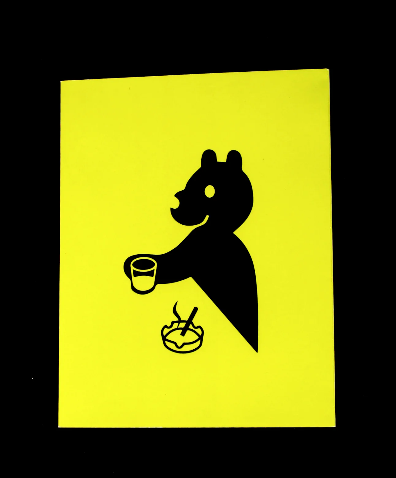 This book is based off the essay "The Producers" written by Ellen Lupton. It is based off of the smoking panda bear "I'm rocking on your dime." Next to the essay is my response to the essay. I chose to "animate" panda bear because the bear was made by Geoff McFetridge who also does some animation work. Since the essay started out with this iconic image I thought it fitting to incorporate the bear drinking while the words come down the page.